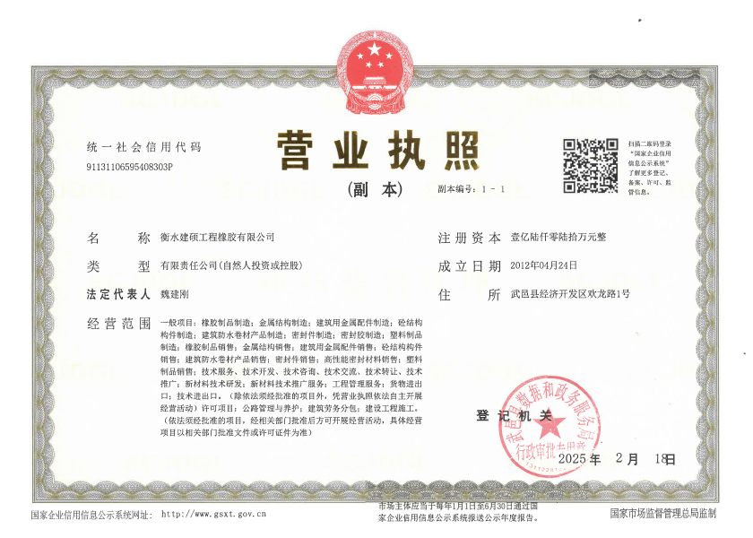 衡水建碩工程橡膠有限公司座落于衡水市濱湖新區(qū),占地面積50000平方米,注冊(cè)資金壹億零捌拾萬元整,是生產(chǎn)橡膠支座、盆式支座、充氣芯模、伸縮裝置、止水帶的專業(yè)廠家。公司始建于九十年代,經(jīng)過近二十年的發(fā)展壯大,現(xiàn)有員工300多人,其中高級(jí)技術(shù)人員45人,高級(jí)技工103人。